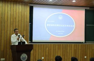 兼职辅导员聘任仪式在智信馆117报告厅举行,学院党委书记王峻、党委副书记张南华出席,学院专职辅导员、班主任参加仪式。