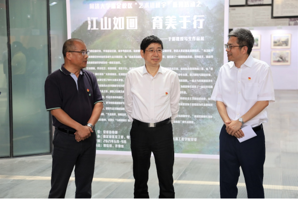 吴广明发表讲话并宣布画展开幕。他强调,近年来学校注重加强嘉定校区的文化建设工作,开展了各类文化活动,嘉定校区的文化软实力不断提升。学校组织开展了包括“高雅艺术进校园”、星期音乐会、文榷堂主题活动、绘画书法展览等各类文化活动,希望广大师生都能够积极参与其中,不断提升文化素养和审美水平。