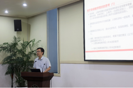 学院教学副院长周俊鹤以“关于人才培养的思考”为题作主题发言,他围绕学院教学成果、课程建设、招生质量等方面对目前学院人才培养现状进行了总结,并针对本研教学存在的问题和挑战,提出了有针对性的思考和举措。
