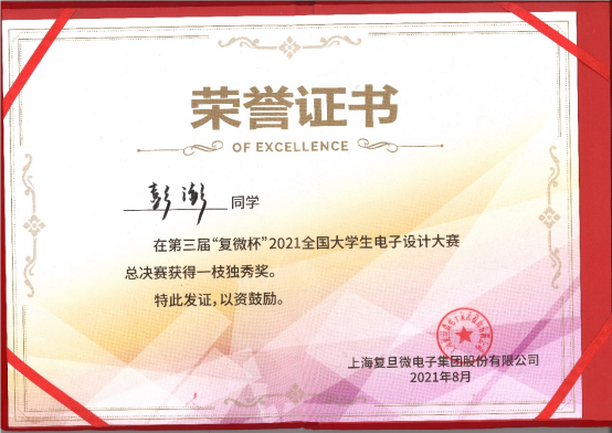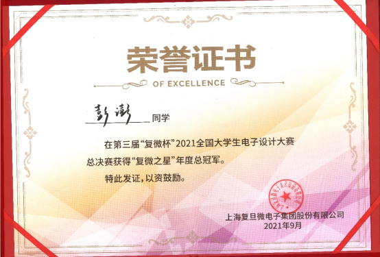 “复微杯”是一项大学生科技竞赛活动,该竞赛聚焦于微电子细分领域,赛题内容紧贴学界研究前沿与业界真实需求,专业性强、挑战性大。竞赛目的在于加强对大学生动手能力的培养和工程实践的训练,提高学生针对实际问题进行电子设计、制作的综合能力,培养大学生的创新能力、协作精神;吸引、鼓励广大学生踊跃参加课外科技活动,为优秀人才服务社会发展创造条件。彭澎同学本硕博均就读于西瓜视频