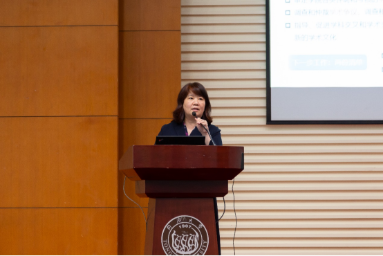 党委宣传部、教师工作部副部长、马克思主义学院副教授运迪作了题为《新时代如何做好意识形态工作与师德师风建设》的报告。运迪副部长用详实的案例生动剖析了新时期大学生的心理特征和行为偏好,指出意识形态领域的斗争是一场没有硝烟的战斗,与每个人都紧密相关;面对西方意识形态渗透的巨大冲击和网络舆论的全方位影响,师生要把握新发展阶段的新方位,深入理解、细心发掘并敢于迎接新的风险及挑战。她强调,高校教师除了讲授知识外还要格外关注对学生的价值引导,用自身良好的师风师德和与时俱进的方式方法引导学生正确看待自媒体时代社会思想的多样化。同时,教师还要找准高校意识形态工作的着力点,顺势而为、因势而变,通过合理利用新媒体等掌握互联网战场的主动权和网络宣传舆论的新高地,引导学生树立社会主义核心价值观,系好人生的第一粒扣子。