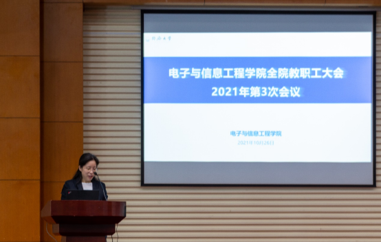 10月26日下午,学院在嘉定校区同心楼224报告厅举行了党委理论学习中心组学习暨全体教职大会,学院党委理论学习中心组成员和全院教职工参加会议。会议由学院党委副书记朱琴跃主持。