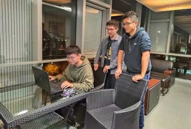 总决赛参赛队伍“两片面包夹芝士队”合影(从左到右,黄定梁、吴泽铭、巴志彪)