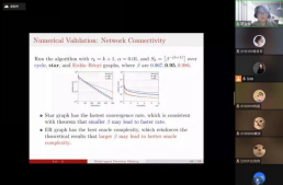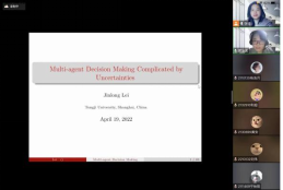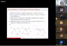雷金龙研究员分别从多智能体决策的背景、模型、势博弈的异步算法以及变尺度采样的分布式算法等方面展开报告。报告中,雷金龙研究员首先介绍了多智能体决策的背景和常见的决策优化模型及其对应的案例。介绍了纳什均衡的相关概念和基本假设及变分不等式问题与纳什均衡问题之间的等价关系。接着详细介绍了同步梯度响应、最佳响应算法、近似最佳响应算法,设计了针对随机变分不等式问题的求解算法。然后对于不确定信息下多智能体的纳什均衡问题,利用势博弈的方法提出异步近似最佳响应方案进行求解,在证明算法渐近收敛性的同时将算法拓展到加权势博弈情况。最后针对智能体仅能获取非完美局部反馈信息,介绍基于变尺度采样和采样梯度估计的分布式算法并给出仿真验证和性能分析。雷金龙研究员丰富精彩的报告为学校师生的学习和科研工作带去了思想启发,也为同学们学习多智能体决策优化与博弈提供了有益指导。