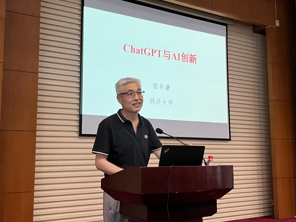7月2日下午,暑期学校系列讲座第三讲在同心楼224室开讲。计算机科学与技术学科专业委员会副主任苗夺谦教授应邀作了“ChatGPT与AI创新”主题报告。本次讲座由研究生工作办公室副主任张云霞老师主持。
