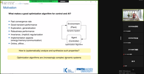 报告结束后,Christian Ebenbauer教授就优化算法综合相关的问题与老师和同学们进行了交流。Christian Ebenbauer教授也根据自身经历勉励同学们要积极拓宽视野,努力探索、发现并解决新的科学问题。此次报告进一步拓展了我校师生的视野,增强了对控制理论综合优化算法的认识与理解。(文/图 张皓 王云姣)
