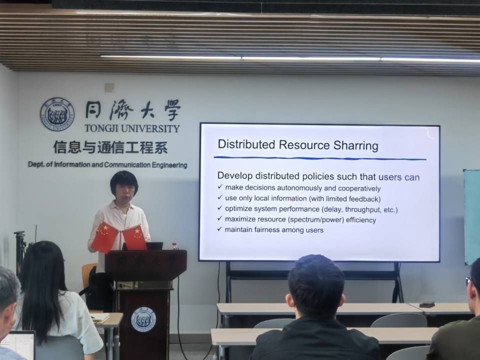 计宇生教授首先介绍了大规模分布式系统,如大规模机器类通信(mMTC)系统中分散控制机制相较于集中式控制的优势。她指出,为了使大量设备能够自主且协作地运行以实现更好的系统性能,多智能体学习技术在大规模分布式系统中的自主资源分配方面具有重要应用。在报告中,计教授详细阐述了如何应用这些技术来优化资源分配,并提高系统的整体效率和性能。