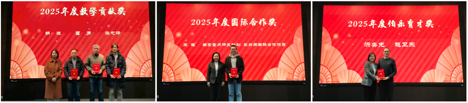 会议对2025年度在科学研究、教书育人、人才引育、国际合作、管理服务等方面表现突出的个人予以表彰,为从教三十周年教师、荣休教师颁发荣誉证书,并举行新进教师入职仪式。董海荣院长作总结发言,感谢全体教职工辛勤付出,强调学院将锚定学科方向、汇聚人才合力,以高质量党建引领一流学科建设,助力教育科技强国建设。