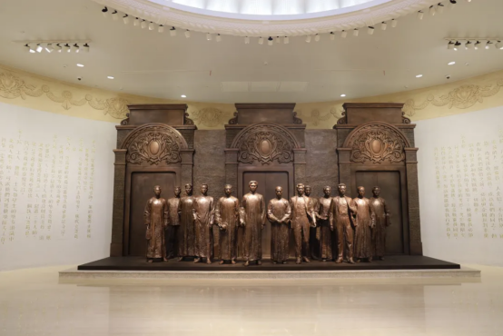 中共一大纪念馆以红色为主基调,展厅内可谓是“步步有景,步步有故事”。驻足在一件件铭刻着历史印记的文物面前,透过文字介绍,循着时间脉络,感慨于苦难深重的旧中国,一代代仁人志士的奋斗与牺牲,同志们由此能够更清晰地体味到为什么只有中国共产党才能救中国。