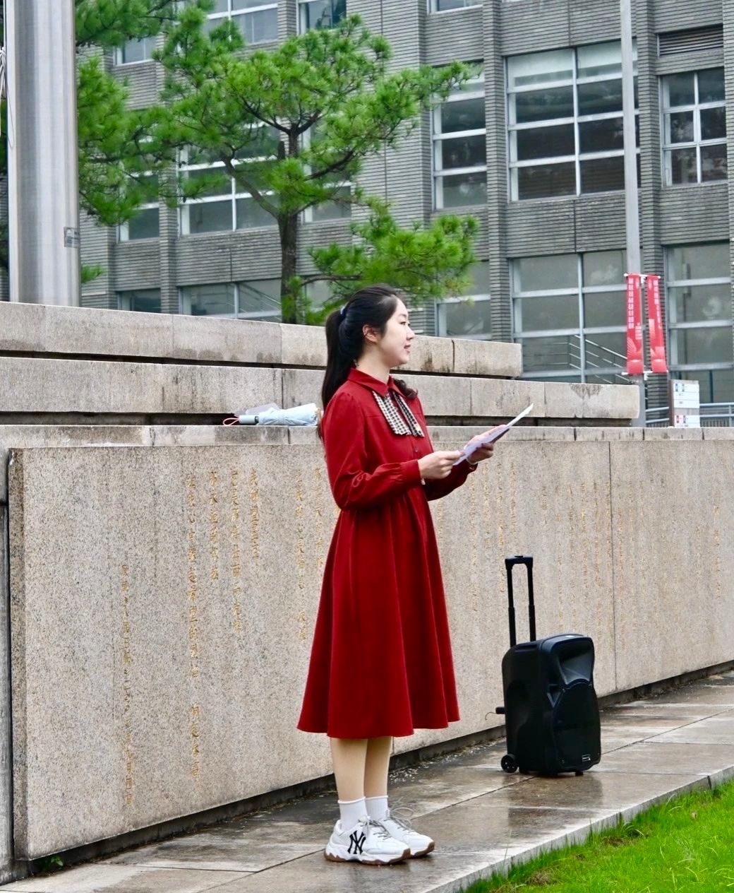 来自机械与能源工程学院的徐韶涵同学上台发言。中国精神,是“坚韧不拔、自强不息”的奋斗精神,是“勇于探索、敢于创新”的进取精神,也是“团结协作、共克时艰”的团结精神。在抗击新冠疫情的战役中,无数90后、00后的青年医护人员、志愿者挺身而出,他们用行动诠释了“国家有难,匹夫有责”的担当,展现了新时代中国青年的勇敢与无私。在科技、体育、文化等各个领域,我们也看到了越来越多的年轻人,他们凭借自己的才华和努力,在国际舞台上为中国赢得了荣誉,让世界看到了中国年轻一代的风采。