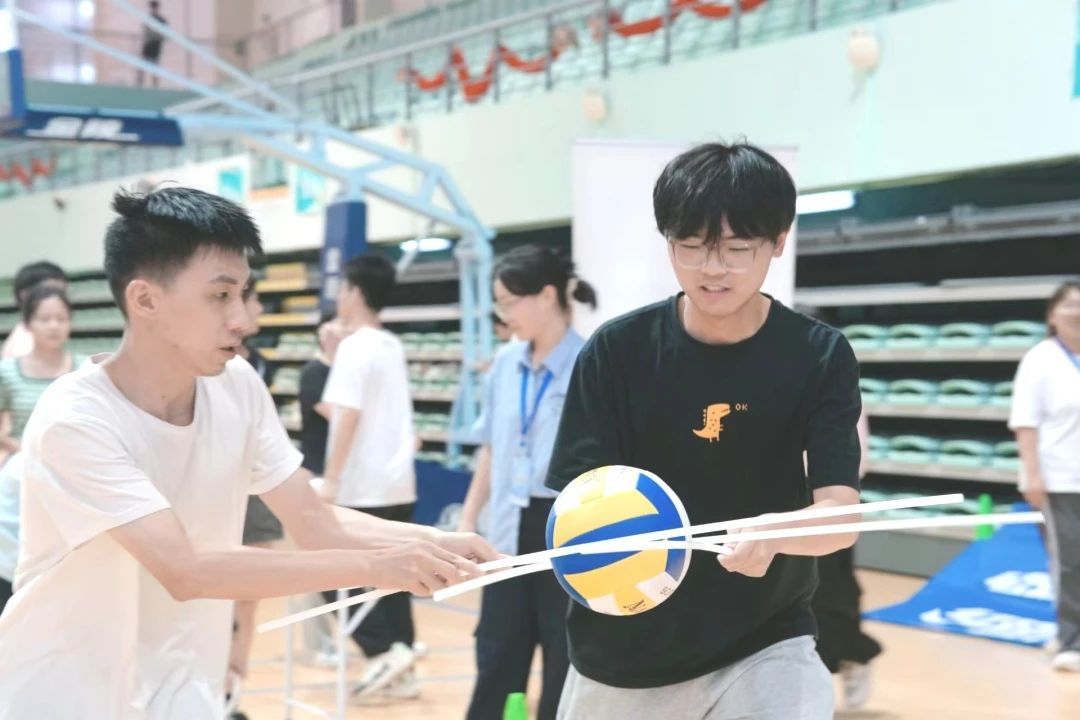团体项目“众星拱月”精彩上演。来自西瓜视频 、计算机科学与技术学院、国豪书院等12支代表队的精英们齐聚一堂,他们通过同心鼓颠球的巧妙配合,一边保持排球在空中弹跳,一边携手冲向终点线,充分展现了团队协作的力量与默契。
