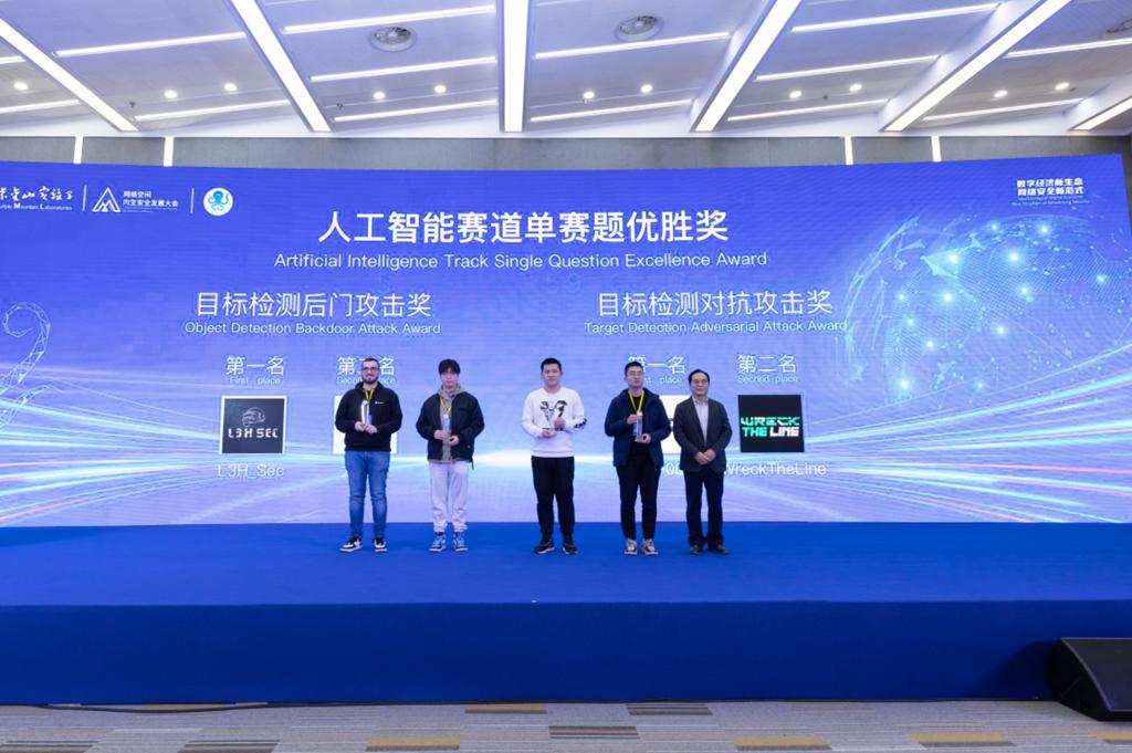 网络安全战队CatTrainingForce的成员季子默、范一禾、蒋子政和姜文渊组队参加了本次比赛,取得了人工智能赛道冠军以及人工智能赛道目标检测对抗攻击单项最高得分奖的好成绩。