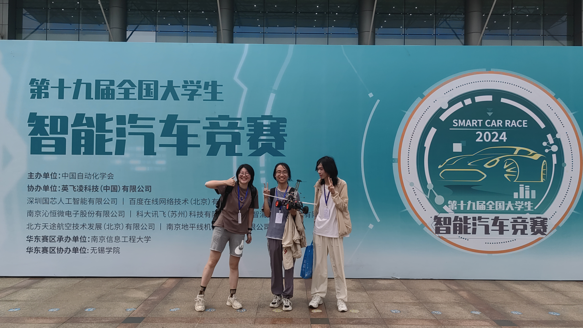 控制科学与工程系张志明老师负责,经过近一年的招新、培训和实践等历程,由张志明、朱劲、余有灵、徐和根等教师指导,老队员刘梦晓、周庚栋、杨思远等参与辅助管理,参加校赛并获得气垫组、摩托组、视觉组、模型组、镜头组(STC/INF/NXP)等五个室内组别和越野信标组一个室外组别的晋级参赛资格。来自3个学院9个专业的27名本科生同学组成8支队伍,由张志明和朱劲两位老师带队,赴南京信息工程大学参加智能车竞赛华东赛区,学生秦光辉(自动化)、景颢(自动化)、刘熠(通信工程)组成的“睿行•大猫圆舞”队获得摩托组一等奖,任昱扬(自动化)、敖思瑾(信息安全)、张冬雪(通信工程)组成的“睿行•追光逐影”队获得镜头STC组一等奖,镜头NXP组、气垫组、越野组和模型组获得二等奖,镜头Infineon组和视觉组获得三等奖。此外,王赛君(自动化)参加汽车学院队伍获得模型组一等奖。