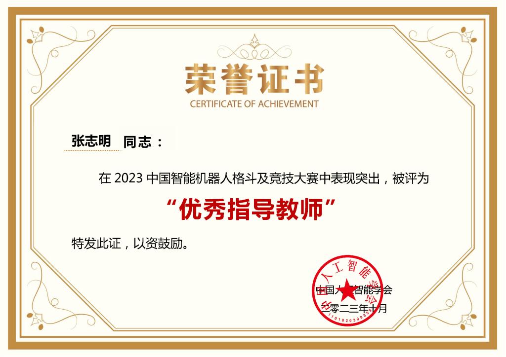 获得优秀组织单位奖项,张志明老师获得优秀指导教师。