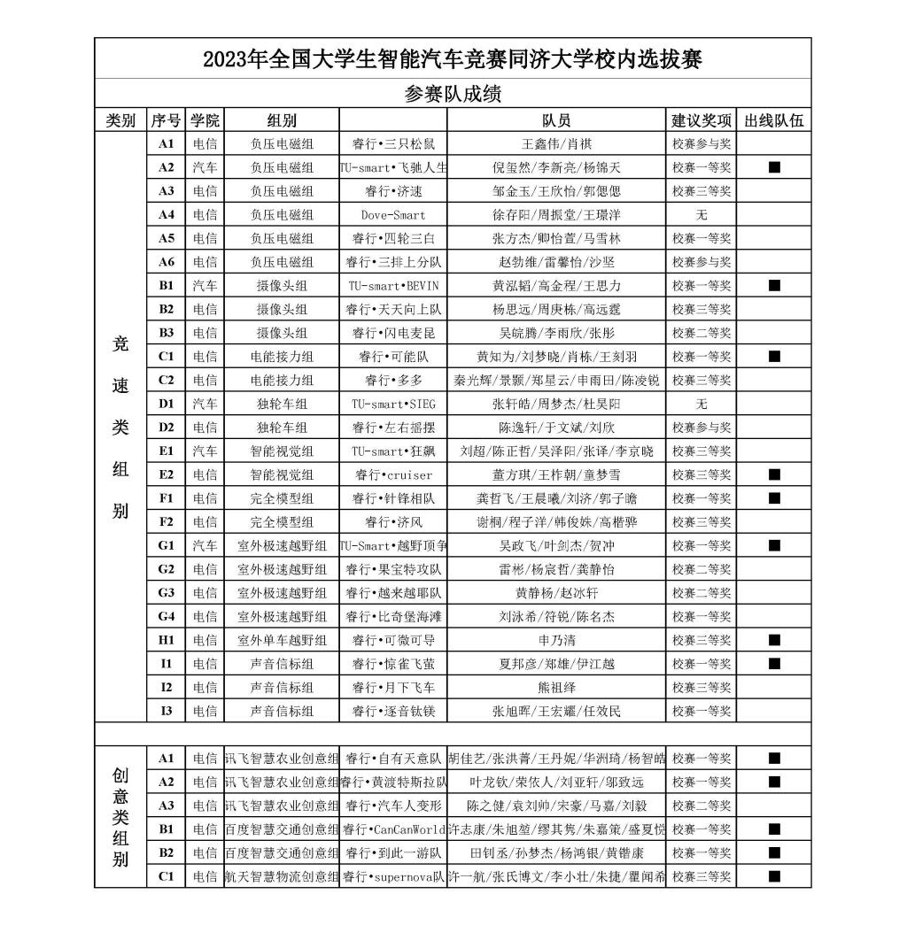 最终,来自电信学院基地竞赛实验室的5支队伍、汽车学院基地竞赛实验室的3支队伍获竞速赛组别出线资格;来自电信学院基地竞赛实验室的5支队伍获创意组别出线资格。