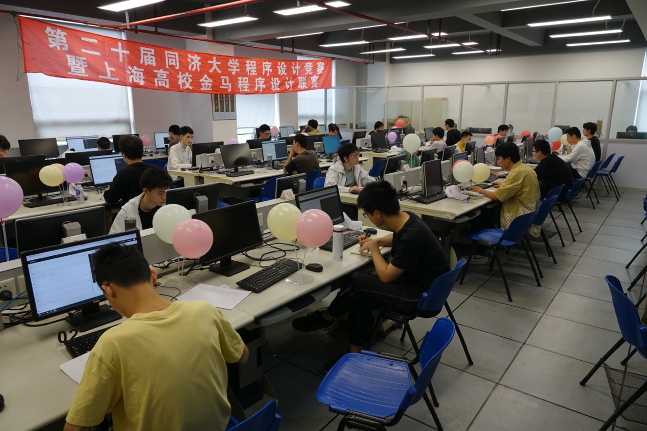 程序设计大赛暨上海高校金马程序设计联赛在嘉定校区智信馆圆满落下帷幕。来自国内180余所知名高校的近760名本科生参与了现场赛(线下)和网络同步赛(线上)的竞技。其中,参加现场赛的选手来自本校16个学院和新生学堂,以及上海市兄弟院校,共80人。经过5个小时的激烈角逐,参赛选手们凭借高超的编程技巧,最终交出了一份满意的比赛答卷。