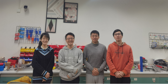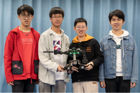实验中心周伟老师指导的“dream fire队”,队员:杨瀚霖(人工智能)、朱旭堃(计算机科学与技术)、李笑天(自动化)、唐艺宁(计算机科学与技术)。