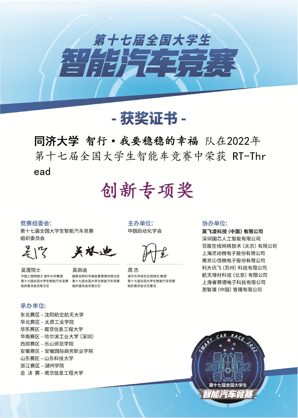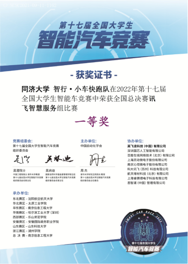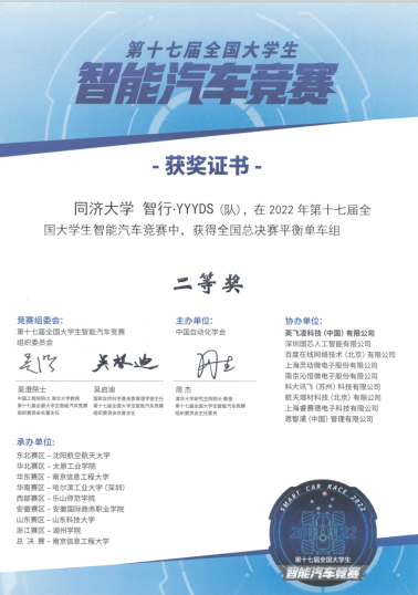 2022年第十七届全国大学生智能汽车竞赛全国总决赛获奖证书