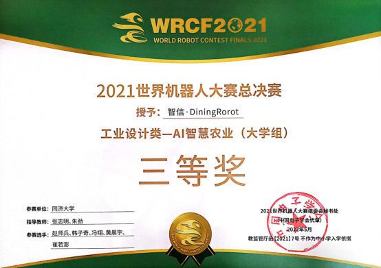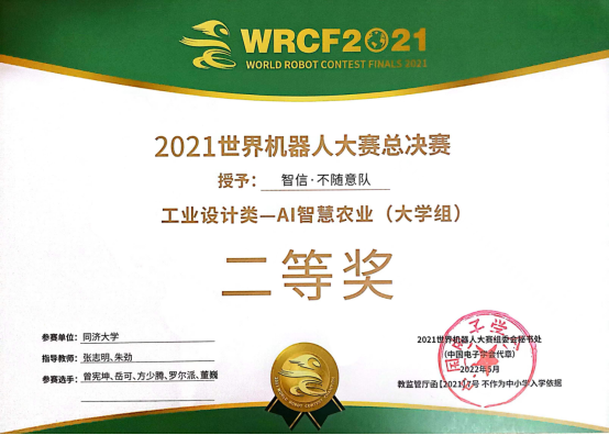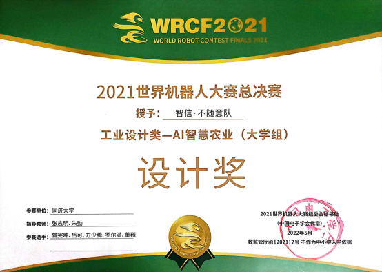参加“工业设计类-AI智慧农业(大学组)”赛项的2支队伍克服困难成功参赛。“智信·不随意队”获得1项全国二等奖,队员为罗尔派(自动化)、董巍(自动化)、岳可(通信工程)、曾宪坤(通信工程)、方少腾(自动化),指导教师为张志明和朱劲;“智信·DiningRobot队”获得1项全国三等奖,队员为黄晨宇(通信工程)、崔若澎(机械与能源工程学院机械设计制造及其自动化专业)、赵师兵(自动化)、韩子奇(自动化)、冯翊(自动化),指导教师为张志明和朱劲;此外,“智信·不随意队”另获得1项赛事设计奖。
