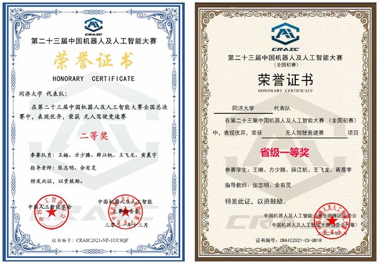 参赛队伍获奖证书