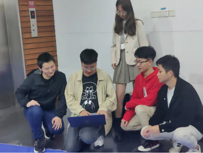 无人驾驶竞速赛参赛队员合影(从左到右:王飞龙、薛江帆、王樾、黄晨宇、方少腾)
