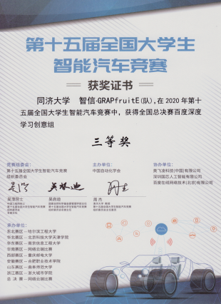 本届创意组比赛设ROS室外光电组和深度学习组两个组别,总决赛难度加大,场景化地复现人工智能在实际领域中的应用。电信学院大学生智能车竞赛实验室组建的两支队伍先后在各自组别的预赛中杀出重围,成功晋级,代表西瓜视频 参加线下现场总决赛。其中“智信ROS”队在ROS光电组国赛预决赛中以18.69秒成绩排名第9,在一等奖排位赛中因车模齿轮机械故障遗憾未能发车,最终排名11(全国一等奖),队员:赵师兵(自动化)、郭展羽(自动化)、贺兰山(自动化)、郑家齐(通信工程),指导教师:张志明、余有灵;“智信•GRAPfruitE”队在深度学习组总决赛比赛中取得全国三等奖,参赛队员:陈麒宇(通信工程)、党荣浩(自动化)、张天成(通信工程);指导教师:张志明、朱劲。