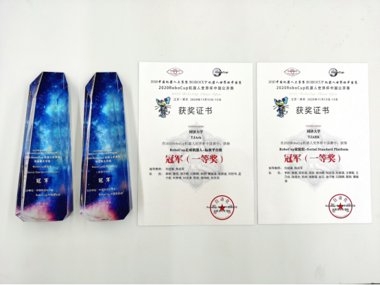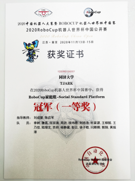 TJArk队在足球机器人标准平台组零封所有对手,以绝对优势再次夺魁,完成了八连冠的创举;在家庭服务机器人标准平台组中第二次参赛,以压倒性的高分轻松卫冕夺冠。