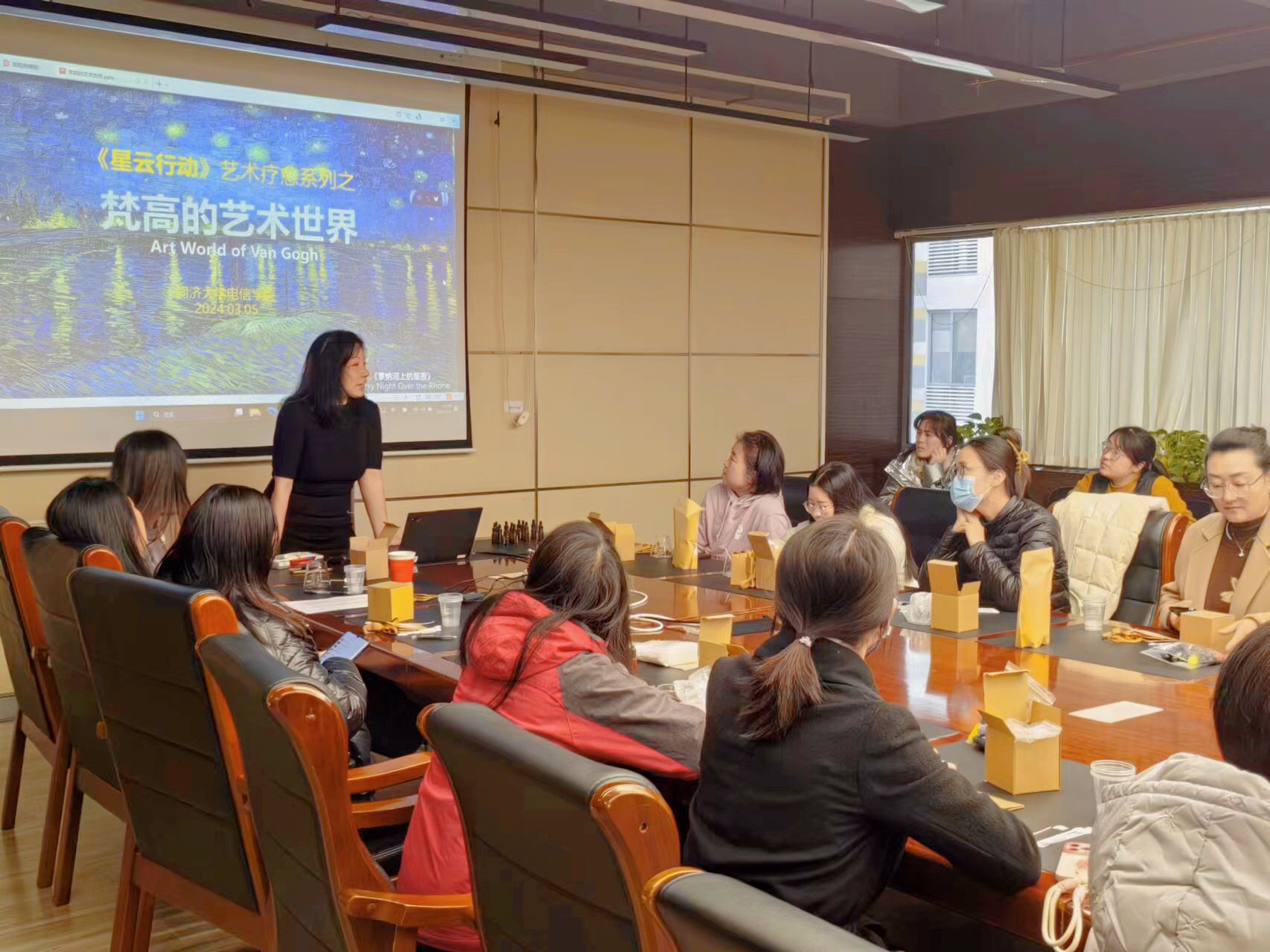 3月5日,为庆祝“三八”国际妇女节114周年,学院在嘉定校区智信馆举办了一场“《星云行动》艺术疗愈系列之梵高的艺术世界”沙画香薰创作体验活动。此次活动特邀中国艺术疗愈大会的发起者、海派沙画的创始人何应丽女士担任主讲人,吸引了30位女教工的积极参与。